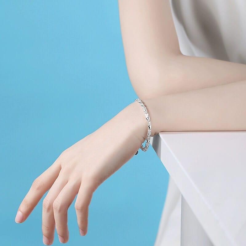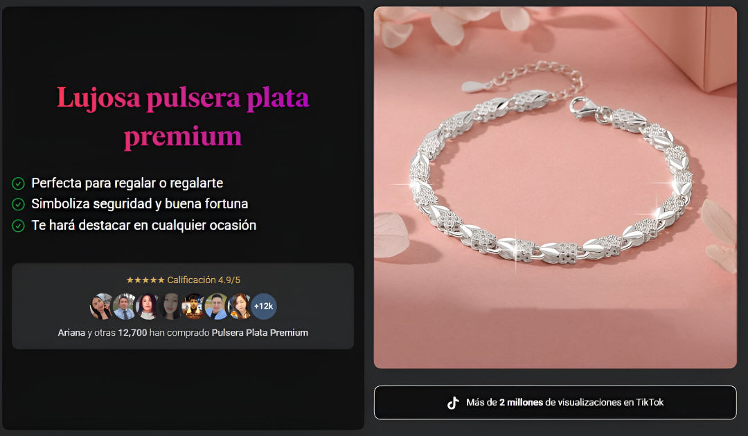 Nuestra pulsera Plata Premium está hecho con materiales de alta calidad para durar años manteniendo su brillo y elegancia. Además, su diseño elegante es perfecto para cualquier ocasión, ya sea formal o casual.